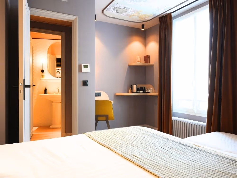 Each space has been designed to enhance the experience of your stay: more fluid volumes, soothing lines, and an atmosphere that invites you to slow down. Here you'll find everything you'd expect from a design hotel in Paris, but with the warmth of a family home you'd like to return to.